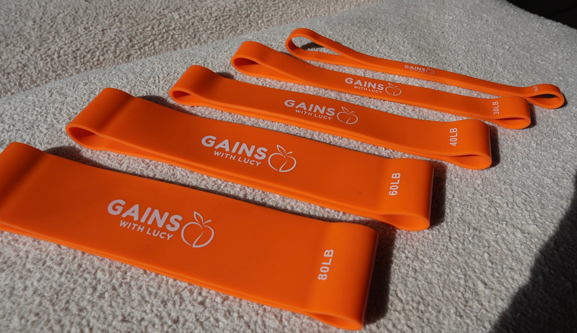 5 Short Multi-Use Bands (the THICKEST on the market) — 15 lb, 30 lb, 40 lb, 60 lb, 80 lb. Stack up to 225 lb of total resistance